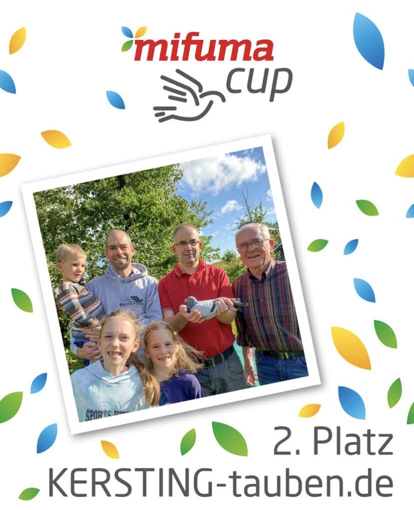 NEWS Mifuma Cup 2025 – Die Sieger 14. November 2025 Read More Vanrobaeys Superstars 2025 31. Oktober 2025 Read More 🍂 Herbst-Auktion 2025 28. Oktober 2025 Read More Erfolge Püttmann-Nachzucht 23. Oktober 2025 Read More Flugergebnisse 2025 22. August 2025 Read More Erfolge 18. August 2025 Read More Final-Flug ab Passau 19.07.2025 20. Juli 2025 Read More SPEKTAKULÄRER Flug ab Plattling 05.07.2025 10. Juli 2025 Read More Meistermannschaft 2024 13. Februar 2025 Read More Regionalsieg ab Passau 07/2023 27. November 2023 Read More Zonensieg beim Pigeon Car Race 27. August 2023 Read More HERO x MAXIMA 27. August 2023 Read More 12 12